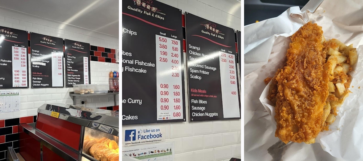 Welcome to The Deep, Pudsey’s premier destination for mouth-watering fish and chips! Located at 143 Littlemoor Rd, we offer a casual dining experience with options for takeaway and delivery. Our menu, boasting delicious fish fried in beef dripping, paired with traditional curry sauce and perfect mushy peas, guarantees a delightful meal at an affordable price. The Deep is family-friendly, featuring a kids' menu and wheelchair-accessible amenities, making it the perfect spot for everyone. Enjoy a quick bite or a leisurely lunch with us! Don’t forget to reserve your table for an unforgettable dining experience.The fish at The Deep stands out for its incredible taste and quality; it's undeniably fresh, cooked to order. Generous portions of chips consistently impress diners, ensuring no one leaves hungry. The friendly service makes visitors feel welcome, emphasizing the restaurant's casual, family-friendly atmosphere. Kids’ meals are a big hit, appealing to younger diners with tasty options. Affordable prices keep customers returning, with most meals priced between £1 and £10. Patrons love the option of dining in or taking their food away, offering flexibility for every schedule. The evening vibe complements a cozy night in with a satisfying meal, making it a beloved local staple.